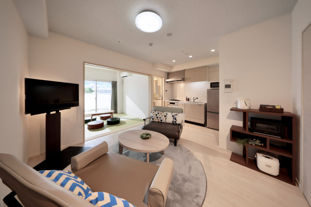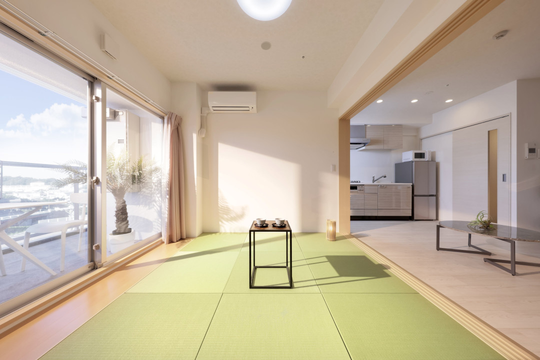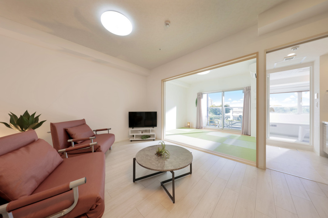 ■Notes■ The information posted is for other rooms of the same type. Please note that the layout, interior, and floor number of the room you will actually be occupying may differ ■Available Wi-Fi in all rooms ■Balcony It features a spacious and open balcony. You can fully enjoy Shirahama's warm climate. ■Living room To provide you with the extraordinary feeling of a resort, we have adopted a luxurious interior design that emphasizes relaxation in the living room. ■Kitchen Equipped with a system kitchen and you can cook by yourself. Enjoy your cooking. ■Bedroom You can feel the warmth and Japanese atmosphere in this tatami room. Lay out your futon and enjoy a good night's sleep. (2 futons, 2 sofa bed) ■Bathroom Bathroom is equipped with “Mirabath” and “Mirable Shower,” which are very popular in Japan and known for their skin cleansing, beautifying, warming, and relaxing effects. Ultra-fine air bubbles cleanse the skin from deep within the pores and relieve fatigue. ■Washing machine and bathroom dryer are equipped. ■Optional services 《simple room cleaning》 Cleaning service is provided once every two weeks at a pre-arranged time. The services provided are as follows: - Linen change (sheets, towels) - Room cleaning (kitchen, toilet, powder room, bathroom, living space) *Consumables (shampoo, detergent, tissues, etc.) will not be replenished. *We will enter your room even if you are not at home.